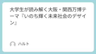 キャリア・進路 大学生が読み解く大阪・関西万博テーマ『いのち輝く未来社会のデザイン』 皆さんは、2025年の大阪・関西万博(以下、万博)の「テーマ」について考えたことがありますか?万博が掲げるテーマはいのち輝く未来社会のデザイン(DesigningFuture Societyfor Our Lives)。これは、史上初めて“... 2025.10.22 キャリア・進路
