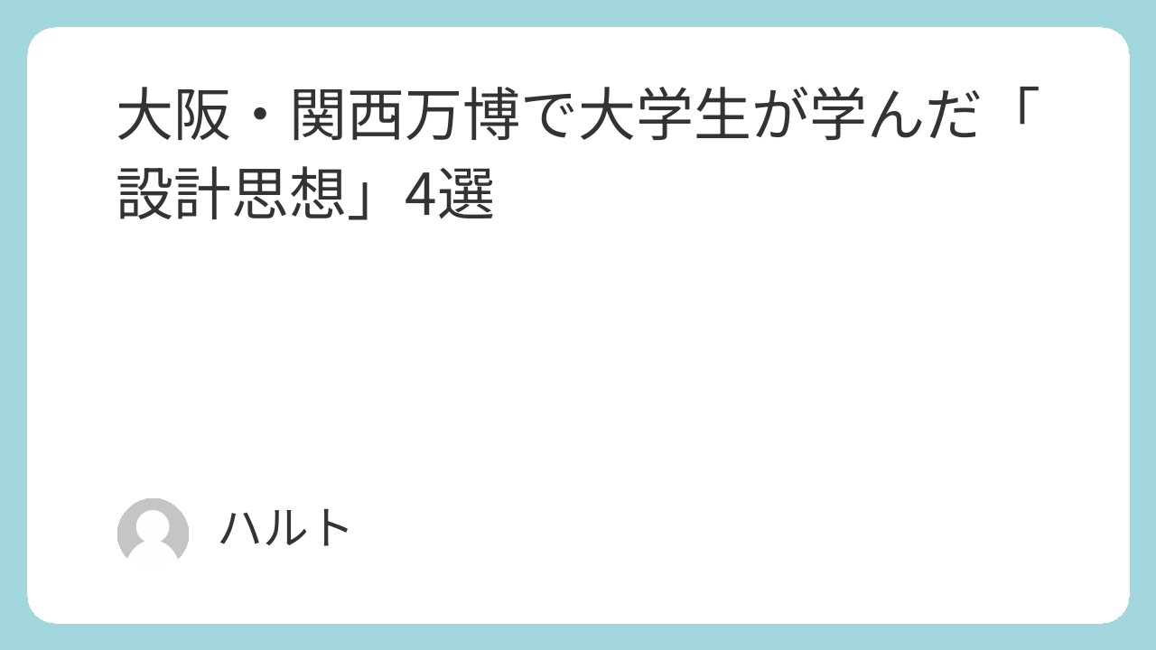 万博をきっかけに、身の回りのインフラや制度にある「設計の意図」を考える視点を持つことこそ、これからの時代に必要な力かもしれません。