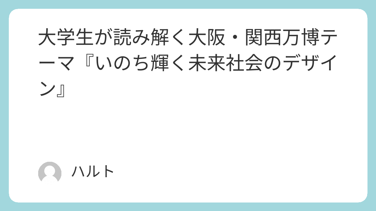 皆さんは、2025年の大阪・関西万博(以下、万博)の「テーマ」について考えたことがありますか?